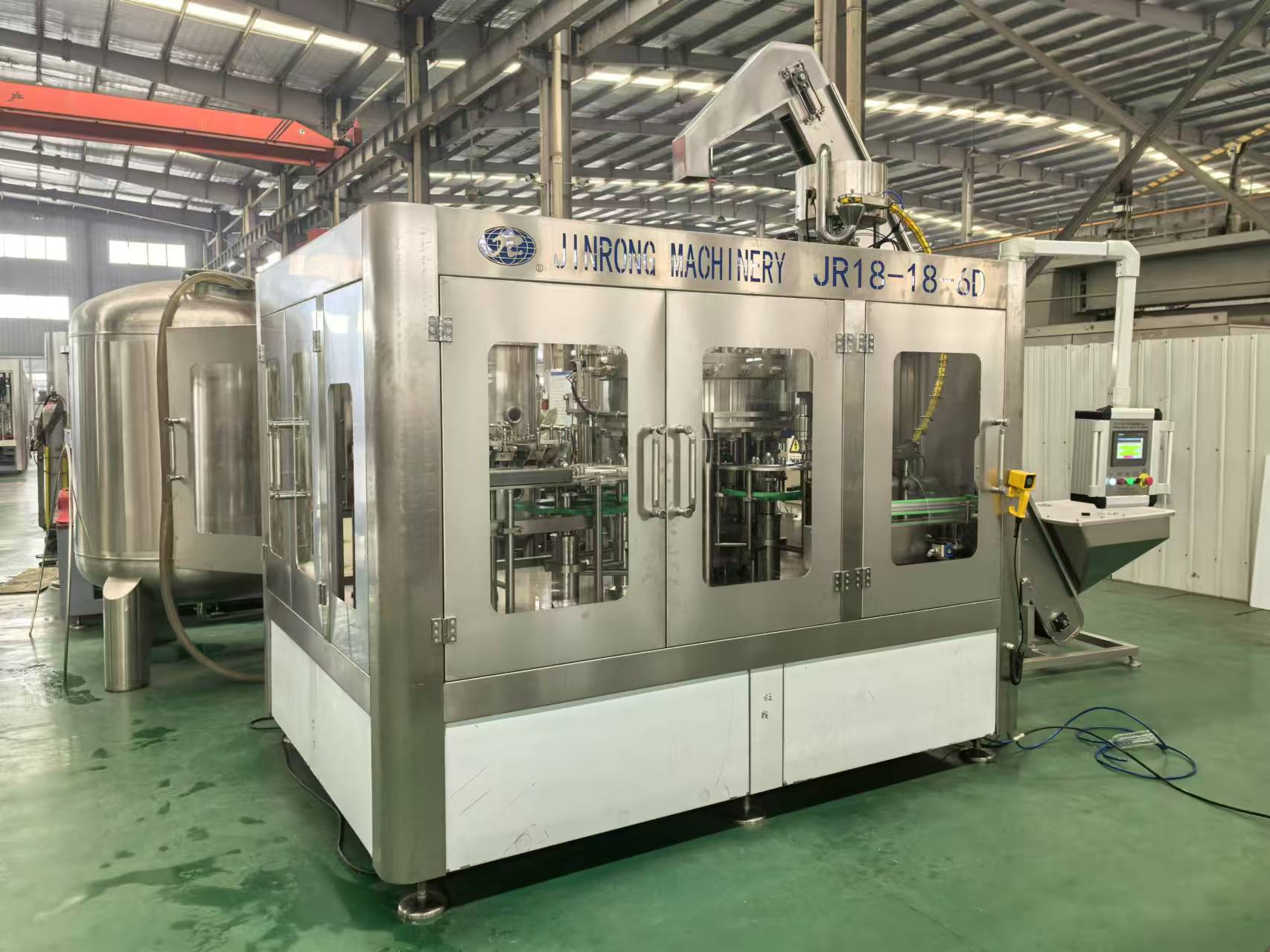 金榮飲料機械廠家制造供應的全套飲料生產線、果汁生產線、碳酸飲料生產線、小瓶礦泉水灌裝設備、大瓶水生產線、桶裝水生產線、純凈水灌裝機設備、瓶裝礦泉水灌裝生產線、易拉罐啤酒灌裝機等系列產品主要運用在純凈水,礦泉水,果汁,茶,熱灌裝飲料,功能飲料,含汽飲料,碳酸飲料,啤酒等液體飲料灌裝生產。其供應的灌裝生產線可配套全自動吹瓶機、水處理設備、前處理設備、飲料殺菌設備、貼標機、包裝機等相關配套機械設備。金榮多年來的設備研發(fā)和制造經驗,讓金榮機械為飲料生產企業和水廠等提供了穩(wěn)定的全套灌裝生產線設備。